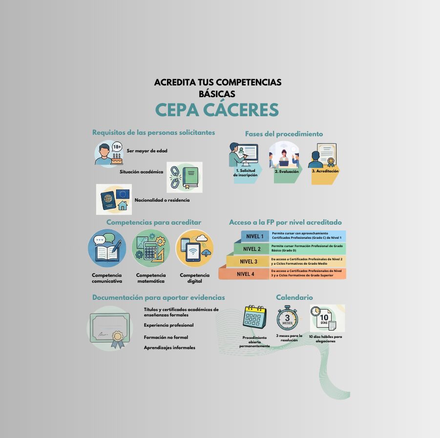 ¿Eres mayor de 18 años y quieres acreditar tu nivel de competencias básicas? Consulta el cartel informativo para conocer los requisitos y el procedimiento. Cartel_Competencias_basicas__(A3)_2 Acércate a la Secretaría del…